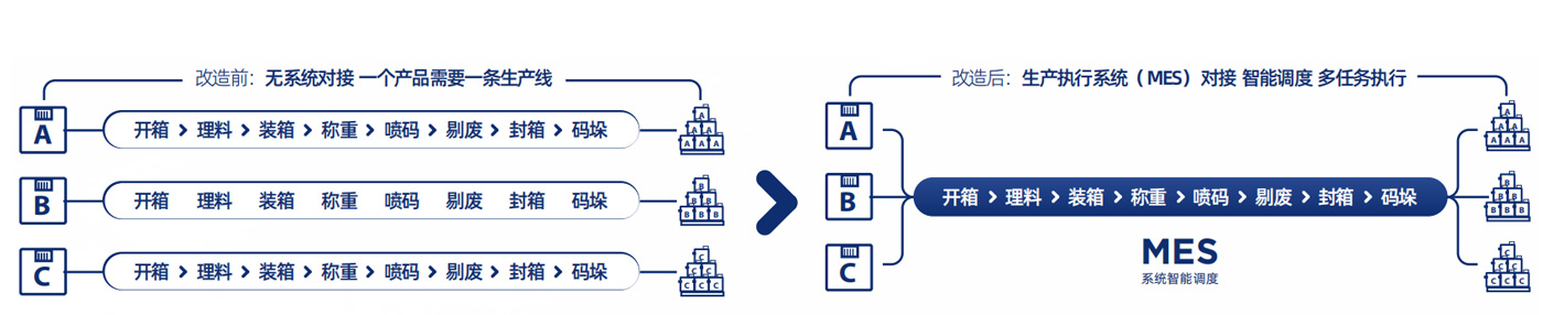 深拓智能-智能裝箱碼垛自動化系統可幫助制造企業實現自動開箱、自動理料、自動裝箱、自動噴碼/貼標、自動檢測/剔廢、自動封箱捆扎、自動碼垛等后道包裝的全自動化、數字化、智能化、柔性化生產管理;省人、降本、提質、增效提高制造企業綜合競爭力。